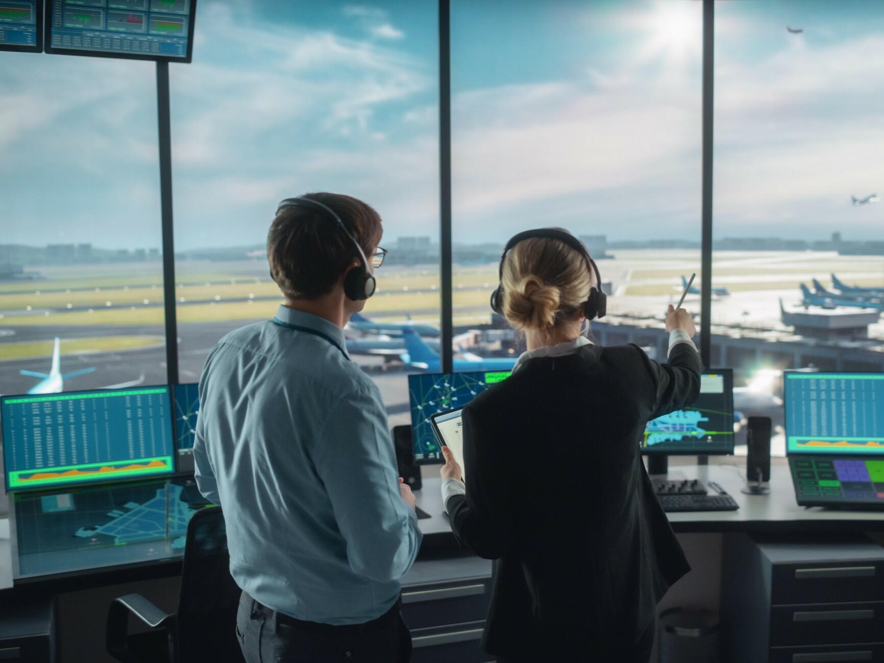 Freigabe zur Landung: FluglotsInnen haben den Radarschirm im Blick, halten Funkkontakt zu PilotInnen und sorgen dafür, dass sich Flugzeuge in der Luft nicht zu nahekommen. Die etwa dreijährige Ausbildung erfolgt intern bei der Austro Control.